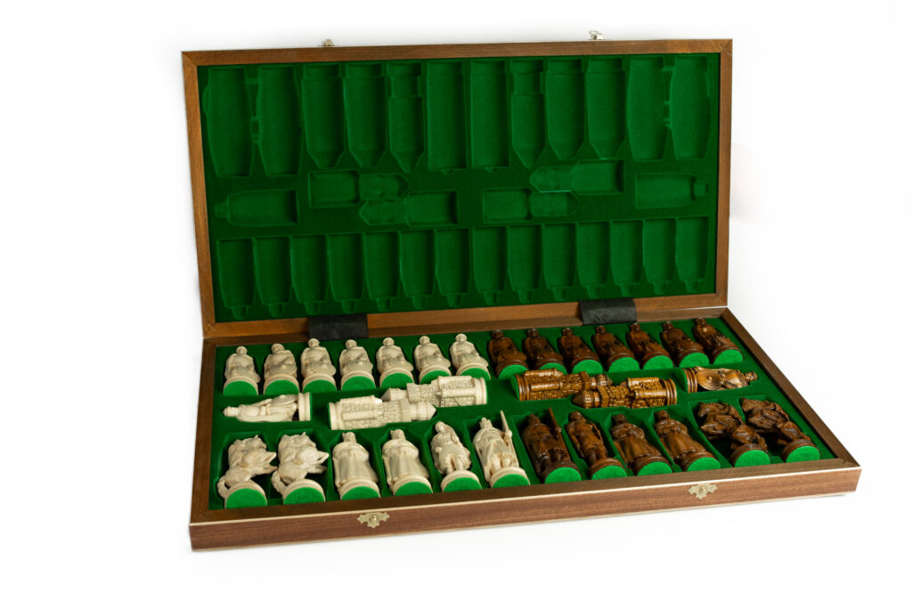 Choć oferujemy wiele rodzajów klasycznych zestawów szachów – w tym turniejowych oraz olimpijskich – gratką dla kolekcjonerów czy miłośników wyszukanych przedmiotów są niewątpliwie figury drewniane oraz z kamienia, inspirowane epokami historycznymi lub obcymi kulturami. Polecamy między innymi wykonane z mielonego marmuru, ręcznie malowane szachy nawiązujące do starożytnego Rzymu i Egiptu, średniowiecznej Anglii, bitwy pod Grunwaldem, a nawet takie z postaciami rodem z fantastyki. Zachęcamy do zapoznania się ze wszystkimi propozycjami artystycznych szachów w ofercie Madoń Chess!